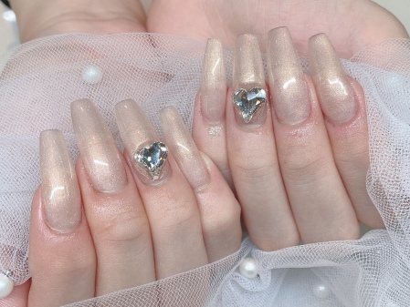 ナチュラルなカラーにキラキラハートがポイントで
