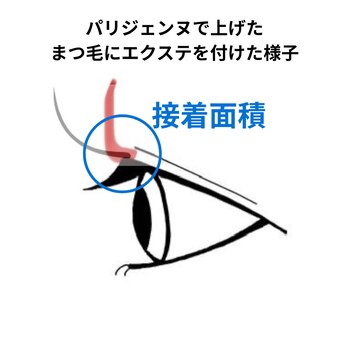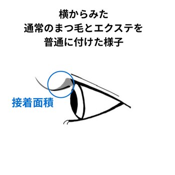 まつげエクステの着く位置と接着剤が重なり合う部分が少なくなり