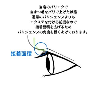 綺麗な状態をキープするために角度を通常のパリジェンヌよりは、やや緩くしております。