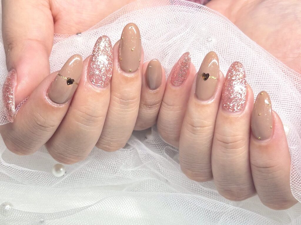 肌なじみのいいベージュと上品にきらめくピンクラメを合わせた